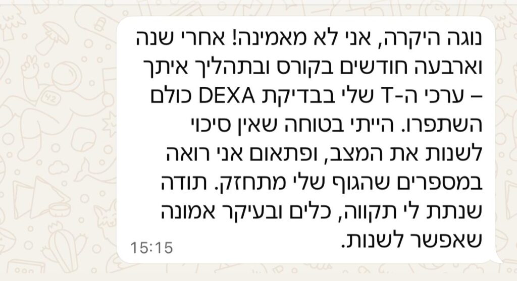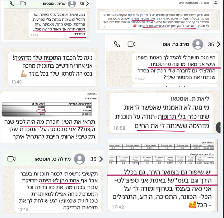 מטופלים הגיעו אליי מלאי פחד וחוסר ודאות, ויצאו עם גוף חזק, שקט נפשי והכי חשוב - שיפור בצפיפות העצם.